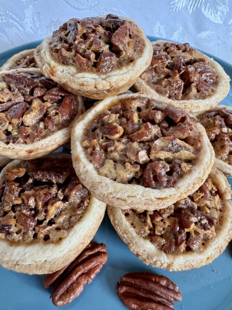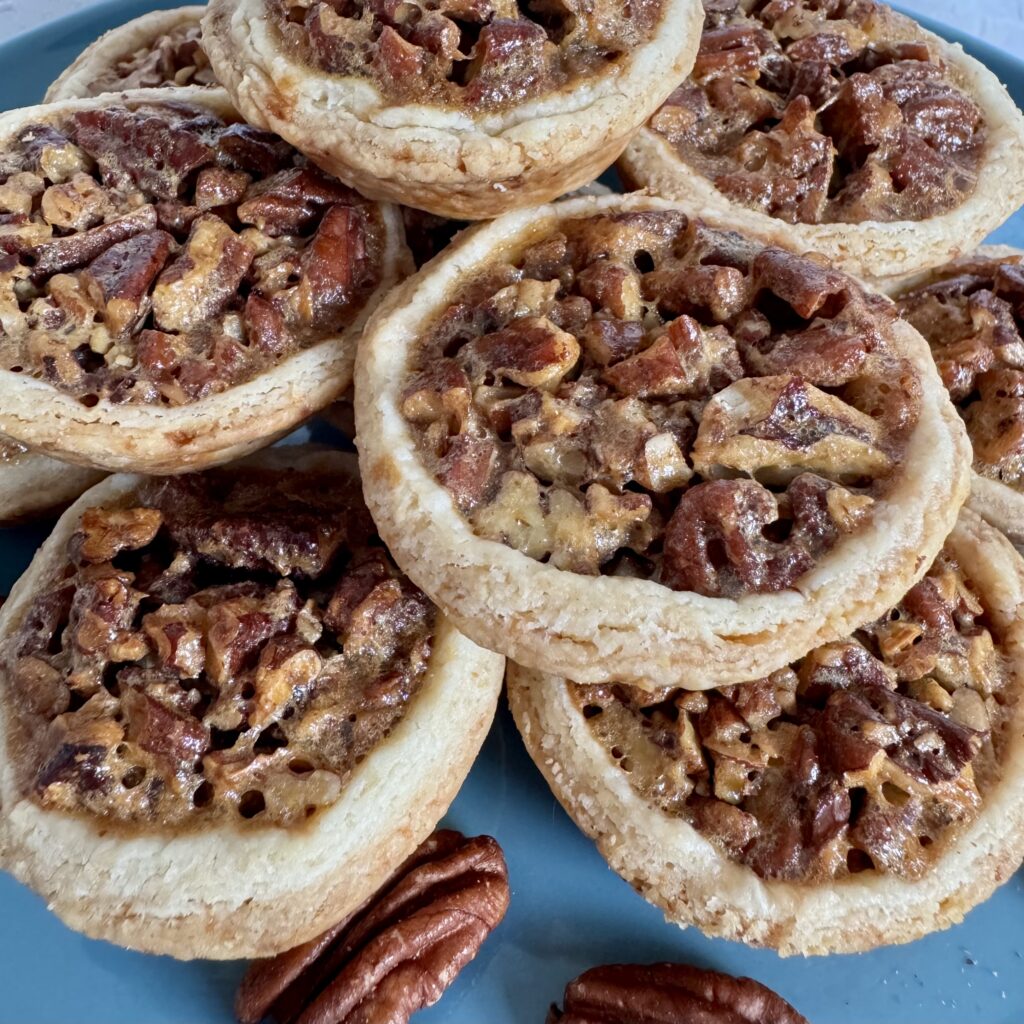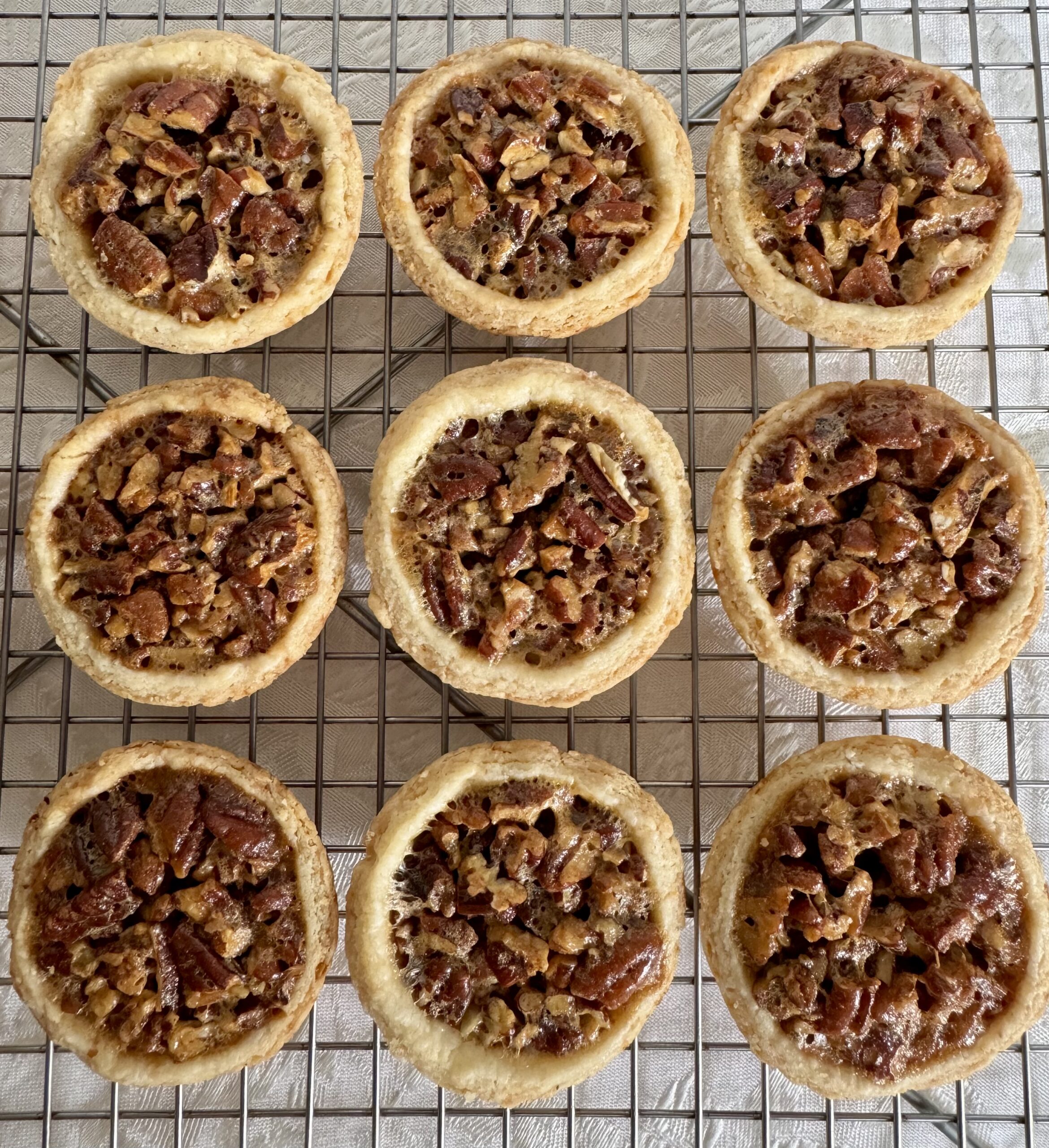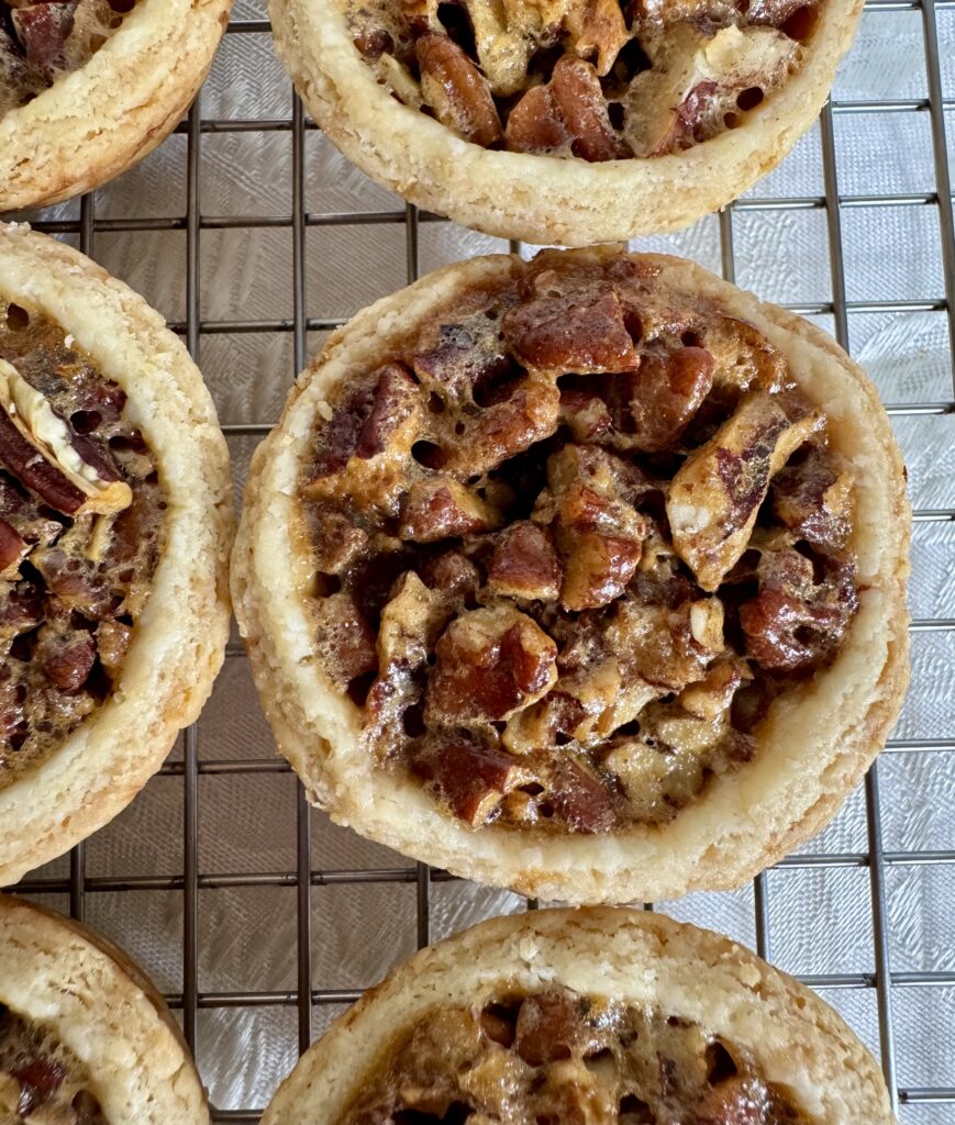 I’ve never made tartlets at Thanksgiving before; we always just go for the whole pies. And we make a lot of them, no matter how many or how few are coming to dinner. This year we’ll be six, and I’m planning on serving cherry pie, pumpkin pie, and these pecan pie tartlets. I love the idea of these little mini-pies… you can get a little taste without having to commit to a whole piece of pie. And their size and shape means you get proportionally more crust with every bite because the whole thing is surrounded by crust. Can never go wrong with that!