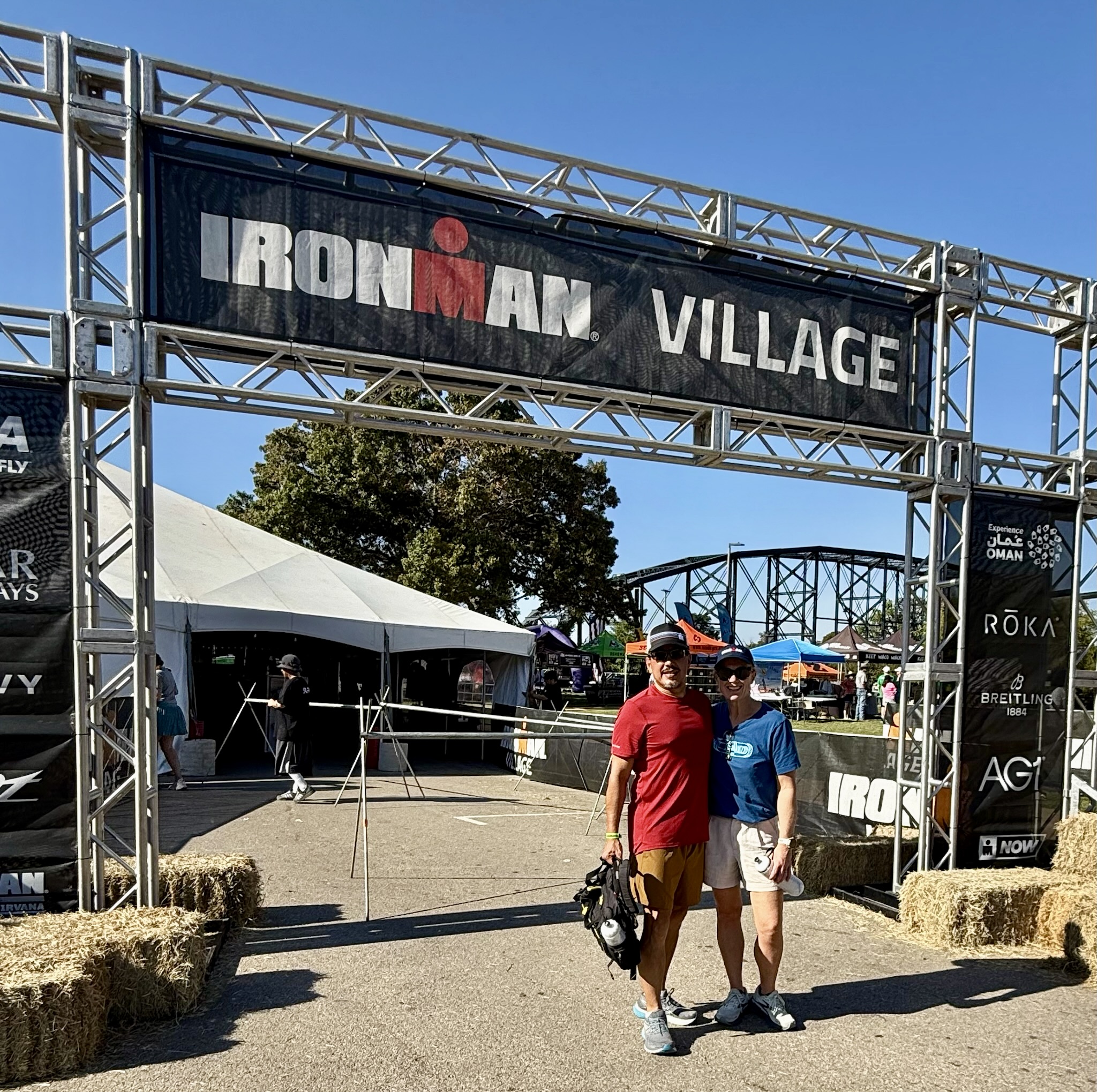 Mark and I have been training for this event since February of this year. It’s our second 70.3 triathlon, and second time to do this particular race in Waco. The distances for a “70.3” are: 1.2 mile swim, 56 mile bike, and 13.1 mile run. Add up these numbers and what do you get? … Yup! 70.3. When we decided to train for the first one in 2024, these distances seemed daunting, and I guess they still do in a way. But the training plan progressed us from an “average fitness level” starting point, to being fairly confident that we could do the whole event in about 7 hours on race day. At the beginning, we were able to swim about a mile (1600m) with rests, bike 1 1/2 hours at an easy pace, and run about 30 minutes- not all on the same day. Week by week, our distances, speed, long workouts, combined workouts (bike + run in the same workout) and overall training volume increased slowly but steadily, until by mid-summer, we were able to bike for 3 1/2 hours (about 95k) followed by a 30 minute run on Saturdays, and then run for 2 hours (about 17k) on Sundays. Weekday workouts were shorter (about an hour) and designed to improve speed and technique. Our overall weekly workout time started at about 5-6 hours a week, and built up to 11-12 hours a week at the height of training. Then about a month before the race, we reduced our training volume back down to 6-8 hours a week, in order to keep the fitness we’d built, but shed the fatigue so we could come into race day feeling fit and ready.